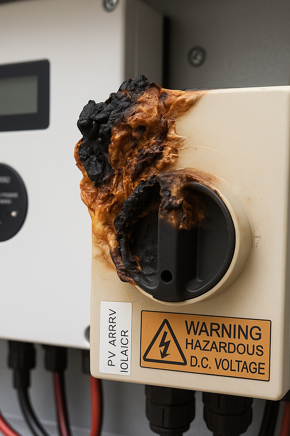 🔥 Evidence shows that many PV fires have started at DC isolators, connectors, or cables due to arcing faults.